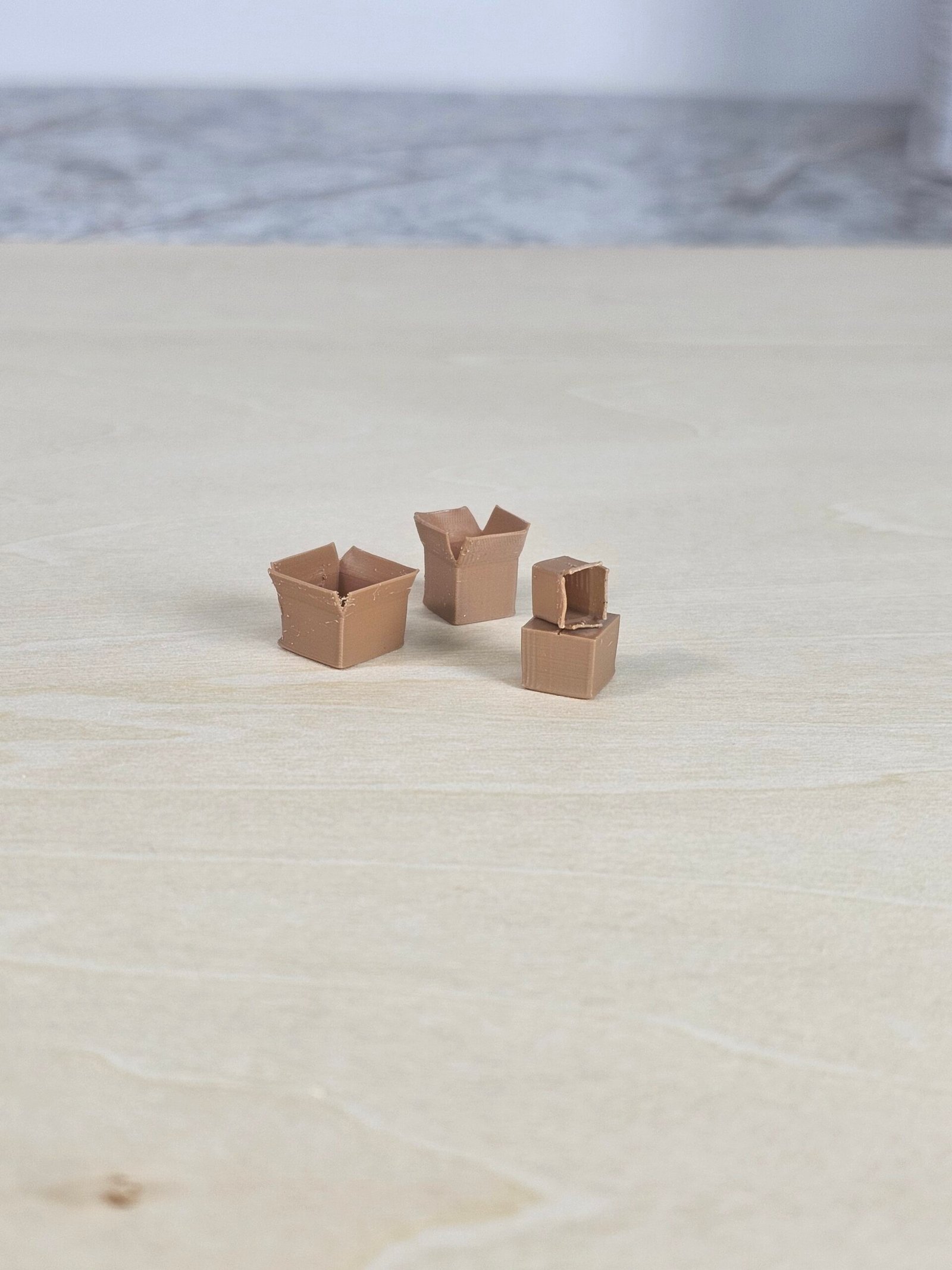 Organiza y completa tus escenas con este set de 4 cajas a escala 1:64, impresas en 3D con gran detalle. Ideales para talleres, almacenes o displays de autos Hot Wheels.